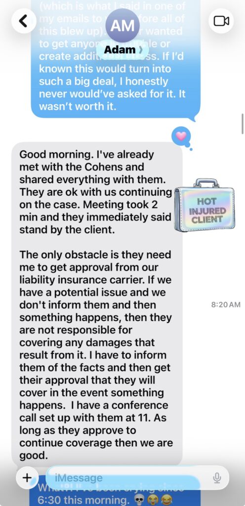 That “smooth transition”? It included me calling new firms, frustrated and confused after he poisoned the well. Nearly every firm asked, “Wait, what is this about an insurance liability?” And every time I tried to explain it, each attorney would say it didn’t make sense.