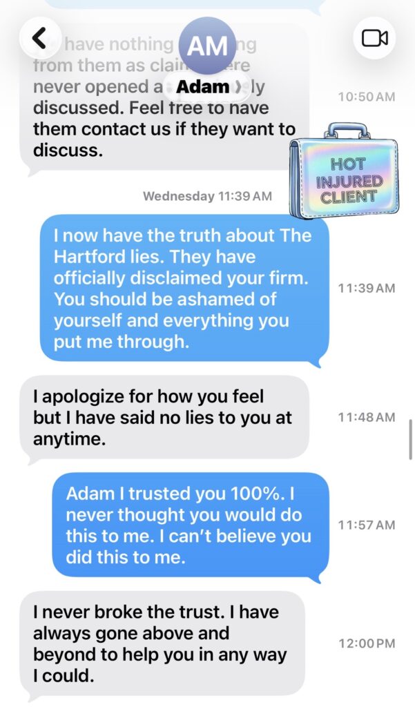 He lied about deadlines, about The Hartford, about coverage. He told me I mattered while hiding a second million-dollar policy. He used fake empathy to slow me down, blocked my access to the firm, and let his paralegal and wife cross boundaries he pretended not to see. When I started asking real questions, he shut down, because the answers would’ve exposed everything.